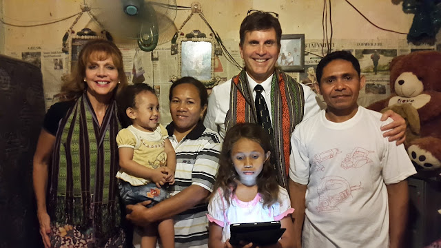 Brother Patris and his wife Anni and their daughter Putri. From NTT in east Indonesia. Recently baptized converts Surabaya 1 Branch. Wonderful humble people. Putri always loves playing with my Ipad. She plays Gospel puzzles and draws using the White Board app. They gave us a traditional NTT scarf as going away remembrances.